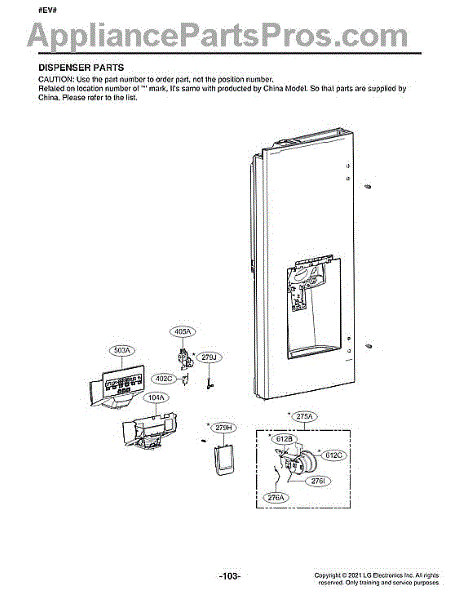 This ice dispenser assembly replaces the dispenser mechanism in compatible LG refrigerator doors, restoring smooth ice delivery and helping stop jams or broken chutes so your dispenser works reliably again. What it does:
