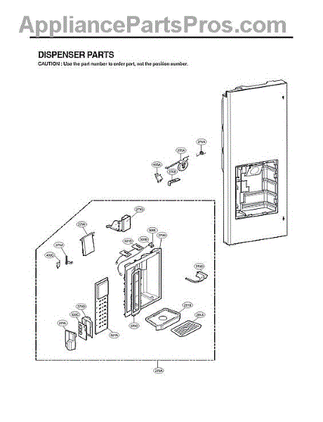 Replaces broken or cracked ice dispenser lever button on LG refrigerators. Installs on front panel dispenser area. Needed when button ear breaks or cracks.