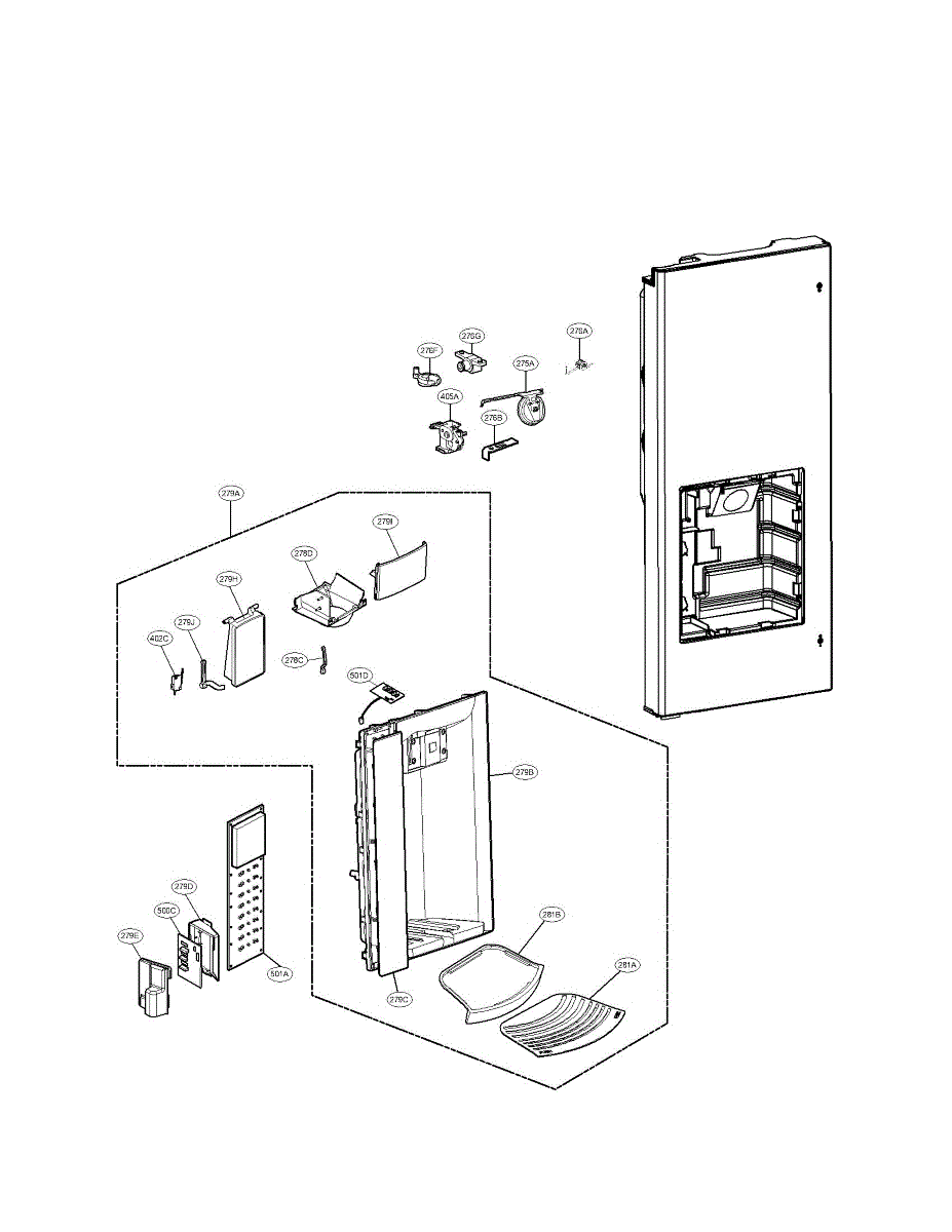 Mounting bracket that supports the dispenser paddle behind your refrigerator's front panel. Replace if cracked, broken, or lever feels loose or misaligned.