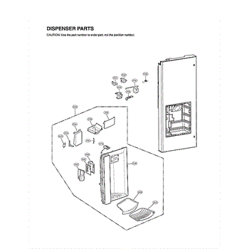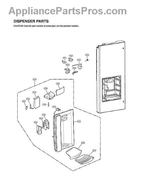 The Dispenser Cover is an OEM part for LG refrigerators. This cover protects the dispenser unit, shielding the internal components from spills and debris.
