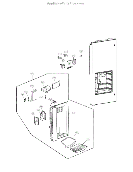 The Dispenser Cover is an OEM part for LG refrigerators. This cover protects the dispenser unit, shielding the internal components from spills and debris.