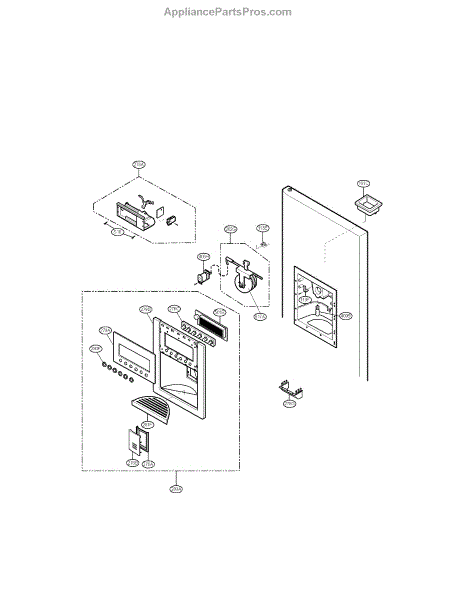 The Ice Chute Door is an OEM part for LG refrigerators. It is located in the ice dispenser area on the front of the refrigerator. It opens and closes automatically when ice is dispensed, ensuring a controlled release of ice cubes or crushed ice into the user's glass or container. The door helps to prevent frost buildup, maintain proper insulation, and protect the ice inside the dispenser.