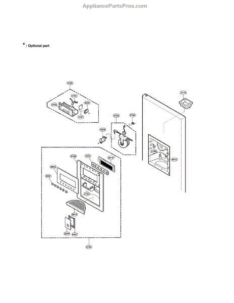 The Ice Chute Door is an OEM part for LG refrigerators. It is located in the ice dispenser area on the front of the refrigerator. It opens and closes automatically when ice is dispensed, ensuring a controlled release of ice cubes or crushed ice into the user's glass or container. The door helps to prevent frost buildup, maintain proper insulation, and protect the ice inside the dispenser.