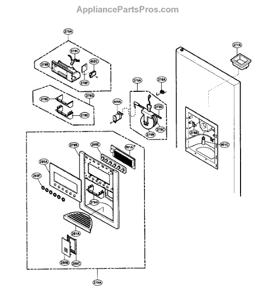 The Ice Door Solenoid Assembly is an OEM replacement part for LG refrigerators. This assembly controls the opening and closing of the ice door, which allows ice to be dispensed from the freezer to the exterior of the appliance. When you request ice, the solenoid activates, opening the ice door and permitting ice to pass through. Symptoms of a bad Ice Door Solenoid Assembly include: