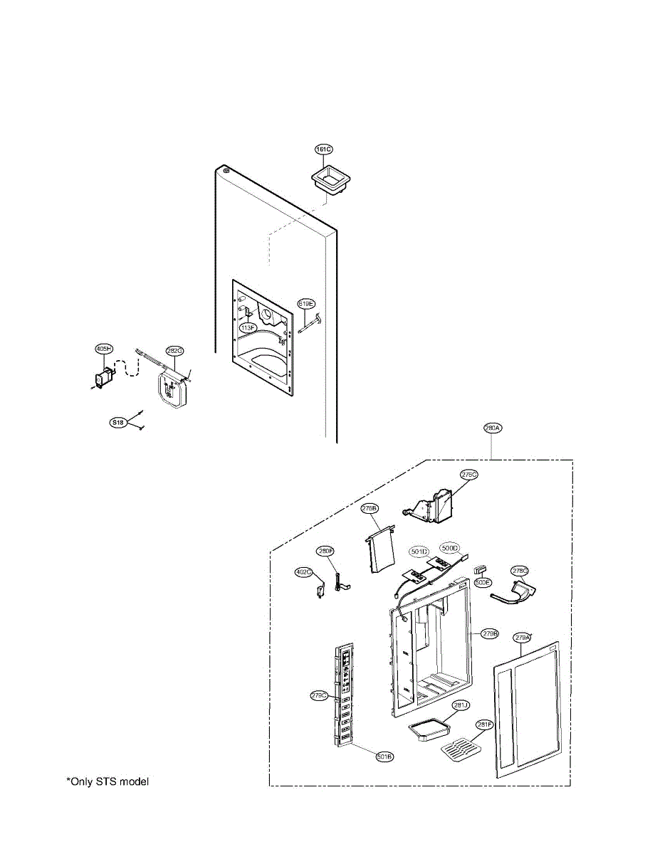 Mounting bracket that supports the dispenser paddle behind your refrigerator's front panel. Replace if cracked, broken, or lever feels loose or misaligned.