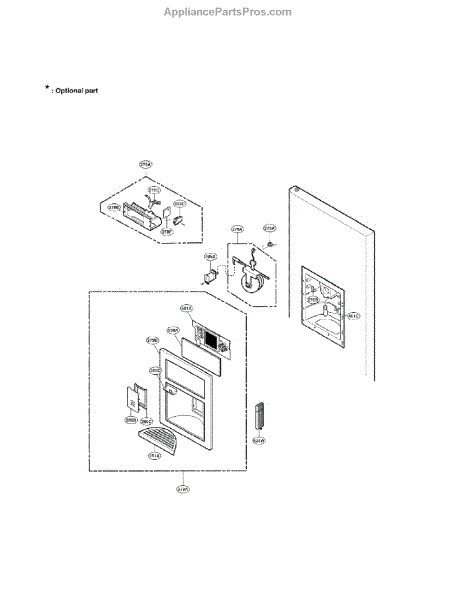 The Ice Chute Door is an OEM part for LG refrigerators. It is located in the ice dispenser area on the front of the refrigerator. It opens and closes automatically when ice is dispensed, ensuring a controlled release of ice cubes or crushed ice into the user's glass or container. The door helps to prevent frost buildup, maintain proper insulation, and protect the ice inside the dispenser.