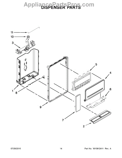 This dispenser trim is the exterior bezel that finishes the refrigerator dispenser opening, restoring a clean appearance and helping align the dispenser components for smooth operation. What it does:
