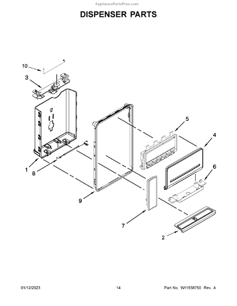 This dispenser trim is the exterior bezel that finishes the refrigerator dispenser opening, restoring a clean appearance and helping align the dispenser components for smooth operation. What it does: