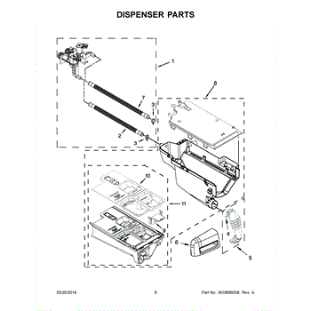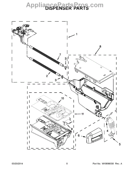 The Washer Dispenser Assembly is an OEM part for Whirlpool washing machines. It is responsible for dispensing the detergent and fabric softener at the appropriate times during the wash cycle. This assembly ensures that cleaning agents are released properly, contributing to effective and efficient washing performance.