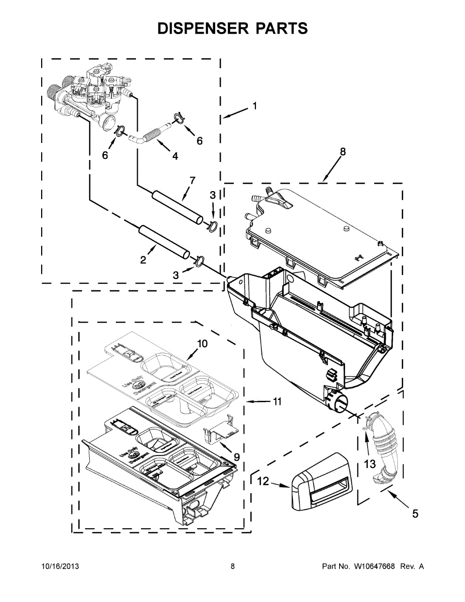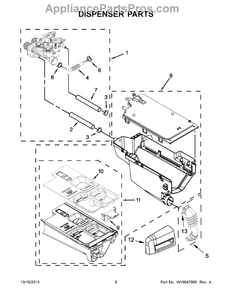 The Washer Dispenser Assembly is an OEM part for Whirlpool washing machines. It is responsible for dispensing the detergent and fabric softener at the appropriate times during the wash cycle. This assembly ensures that cleaning agents are released properly, contributing to effective and efficient washing performance.