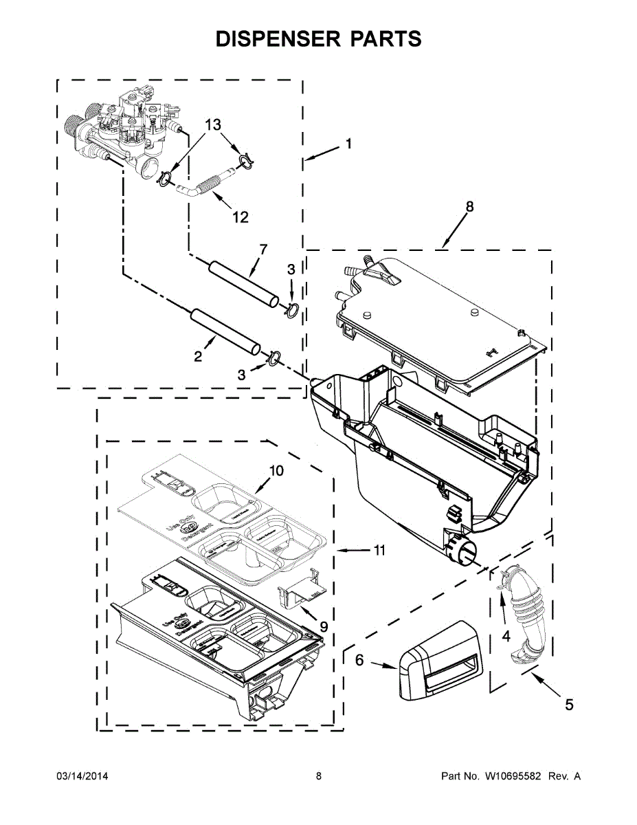The Washer Dispenser Assembly is an OEM part for Whirlpool washing machines. It is responsible for dispensing the detergent and fabric softener at the appropriate times during the wash cycle. This assembly ensures that cleaning agents are released properly, contributing to effective and efficient washing performance.