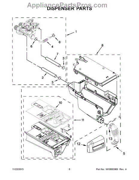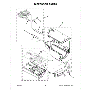 The Washer Dispenser Assembly is an OEM part for Whirlpool washing machines. It is responsible for dispensing the detergent and fabric softener at the appropriate times during the wash cycle. This assembly ensures that cleaning agents are released properly, contributing to effective and efficient washing performance.