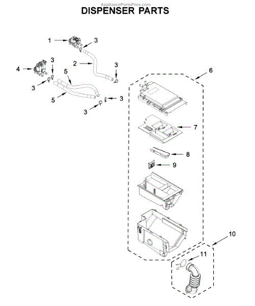 This replacement hose routes water between internal components, maintaining a secure, leak-resistant path so your appliance can fill, circulate, and drain as designed. Replacing a damaged or clogged hose restores proper water flow and helps prevent leaks.