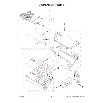 The Washer Dispenser Assembly is an OEM part for Whirlpool washing machines. It is responsible for dispensing the detergent and fabric softener at the appropriate times during the wash cycle. This assembly ensures that cleaning agents are released properly, contributing to effective and efficient washing performance.