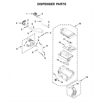 The Detergent Dispenser Drawer is an OEM part for Whirlpool washers. This drawer is designed to hold and dispense detergent, fabric softener, and other laundry soaps during the wash cycle.