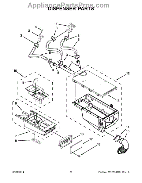 Parts for Maytag MLG20PRCWW0: 11 - Dispenser Parts