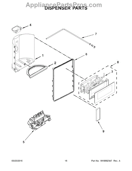 The Dispenser Pad is an OEM part for Whirlpool refrigerator dispensers. It attaches under the dispenser lever to activate water and ice functions with light finger pressure.