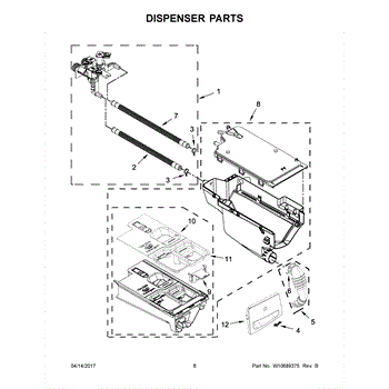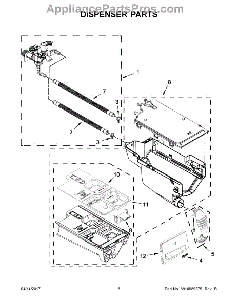 The Washer Dispenser Assembly is an OEM part for Whirlpool washing machines. It is responsible for dispensing the detergent and fabric softener at the appropriate times during the wash cycle. This assembly ensures that cleaning agents are released properly, contributing to effective and efficient washing performance.