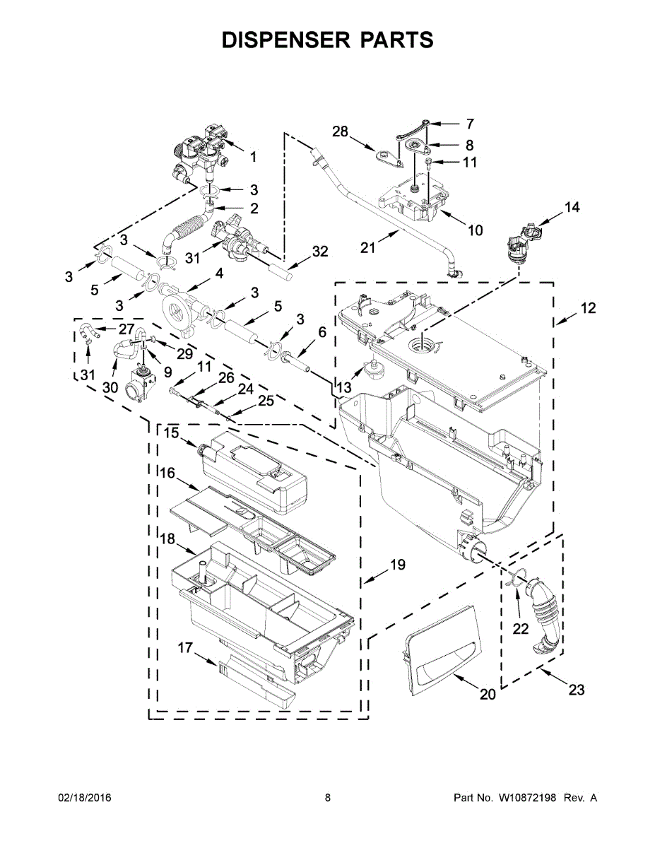 This dispenser drawer holds and guides detergent, bleach, and fabric softener into the washer at the correct cycle time. Replacing a worn drawer helps prevent leaks, residue buildup, and improper dispensing that can affect wash results.
