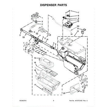 This dispenser drawer holds and guides detergent, bleach, and fabric softener into the washer at the correct cycle time. Replacing a worn drawer helps prevent leaks, residue buildup, and improper dispensing that can affect wash results.