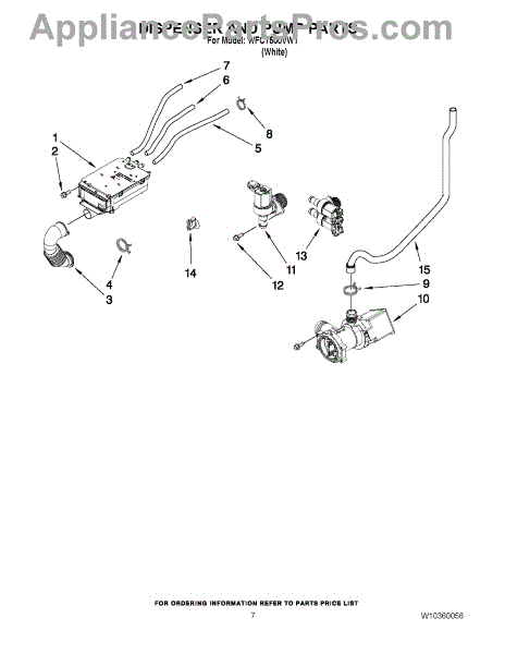 This circulation pump recirculates water through the spray arms during the wash and rinse cycles. Replacing a failing pump restores proper wash pressure and helps resolve poor cleaning, no-spray conditions, and loud humming from the motor.