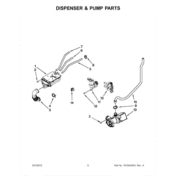 This circulation pump recirculates water through the spray arms during the wash and rinse cycles. Replacing a failing pump restores proper wash pressure and helps resolve poor cleaning, no-spray conditions, and loud humming from the motor.