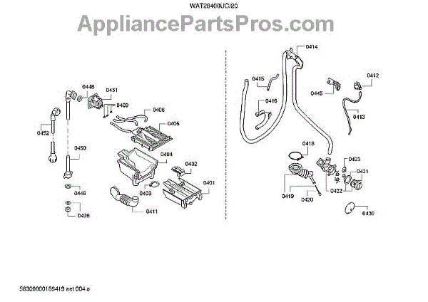 Parts for Bosch WAT28400UC/20: Dispenser Tray / Outlet Pipe Parts