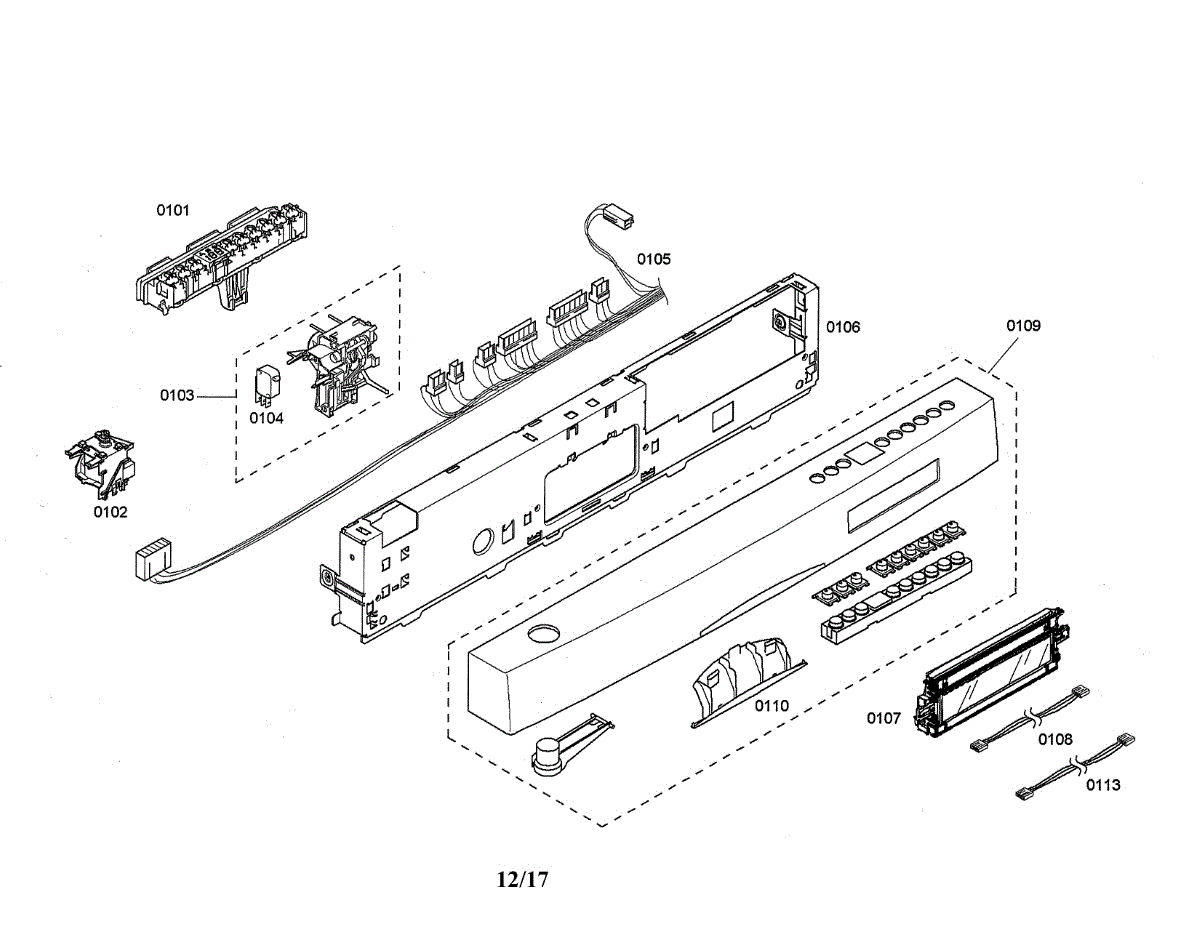 Cable harness for dishwasher door control panel. Replaces damaged, frayed, or corroded wiring harness. Restores electrical connections between components.