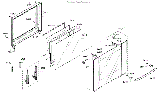 A replacement outer glass panel for Bosch appliances that restores the door's appearance and protects internal components from damage. Use this panel to repair visible chips, cracks, or shattered glass and return the door to serviceable condition. What it does:
