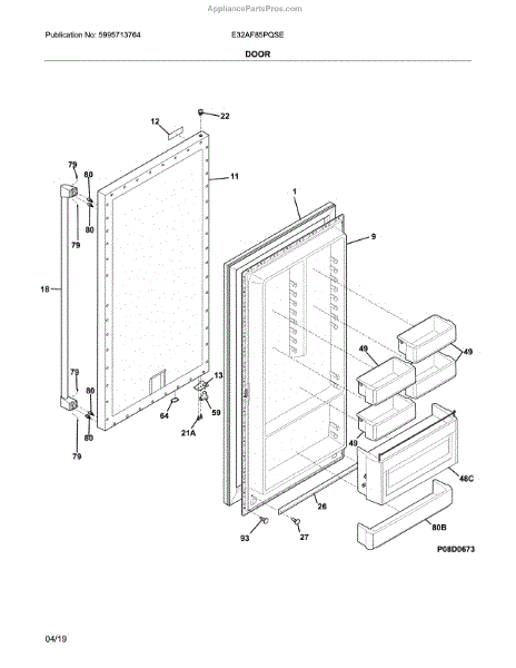 Parts for Electrolux E32AF85PQSE: Door Parts