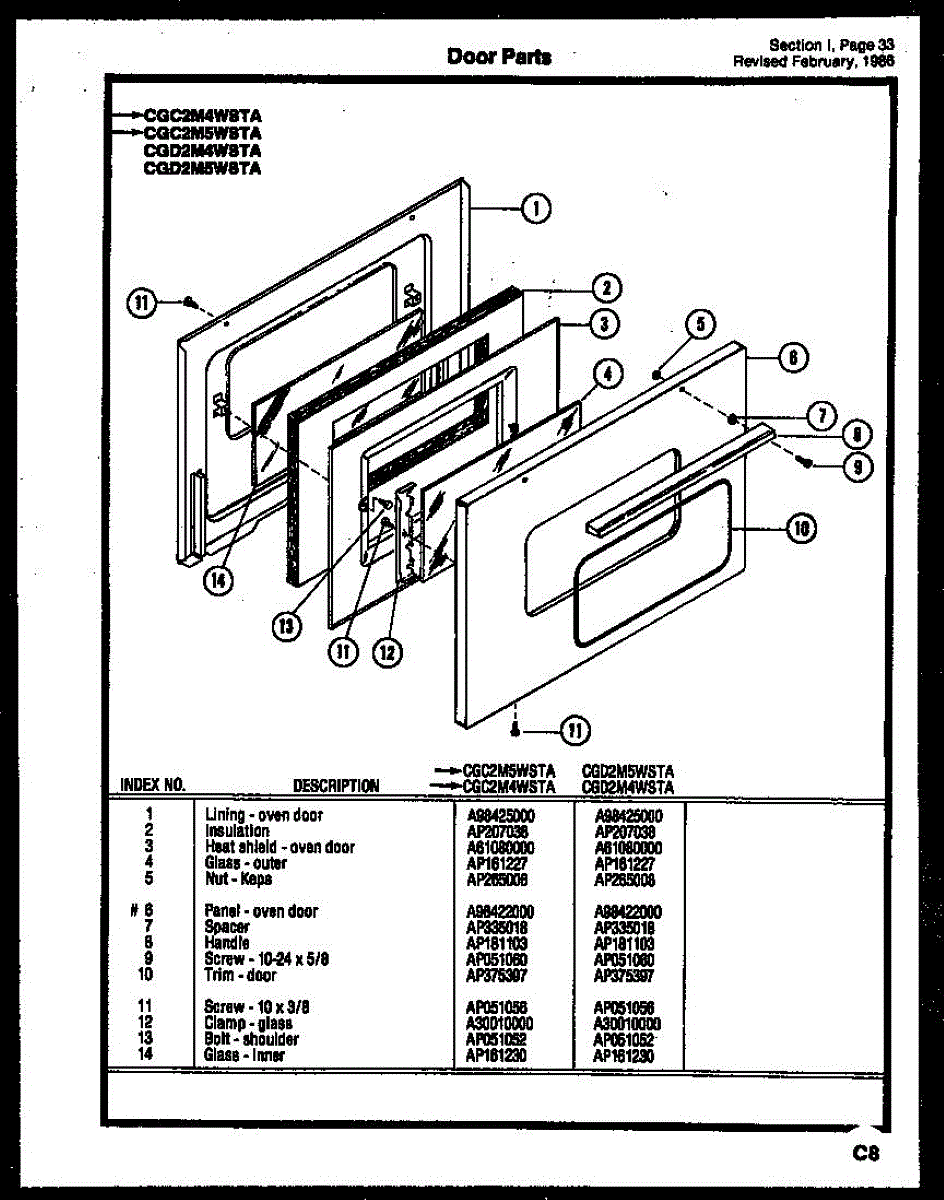 Parts for Frigidaire CGA3M2WSTB: 22 - Door Parts