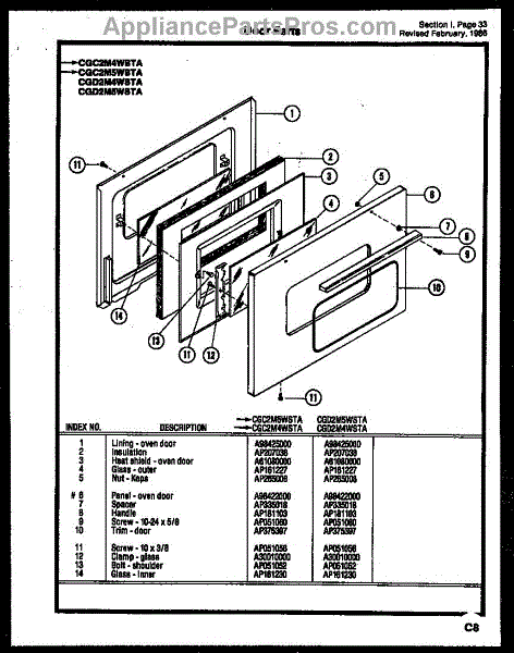 Parts for Frigidaire CGA3M2WSTC: 22 - Door Parts
