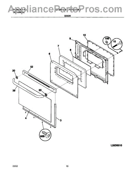 Parts for Frigidaire FEF326ASB: 11 - Door Parts