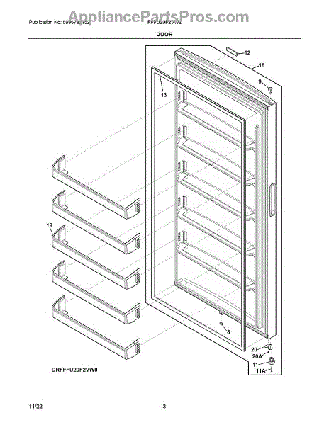 This shelf door is a replacement door bin that restores secure storage on the refrigerator door, keeping bottles and condiments upright and organized. It's a direct-fit part designed to replace a cracked or broken door shelf. What it does: