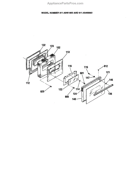 Parts for Kenmore 911.45468893 (91145468893, 911 45468893): Door Parts