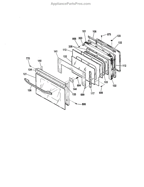 Oven door glass window pack for viewing food while cooking. Replaces cracked, shattered, or broken glass. Installs inside the oven door frame assembly.
