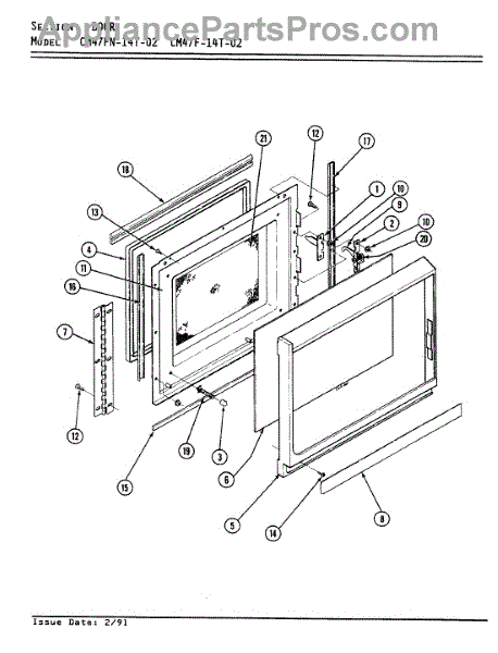 Parts for Magic Chef 59FK-5TXWM: 04 - Door Parts (Cm47f-14T-02) Parts