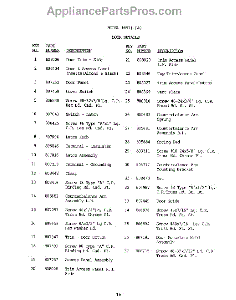 Parts for Roper 8501L40: 16 - Door Parts