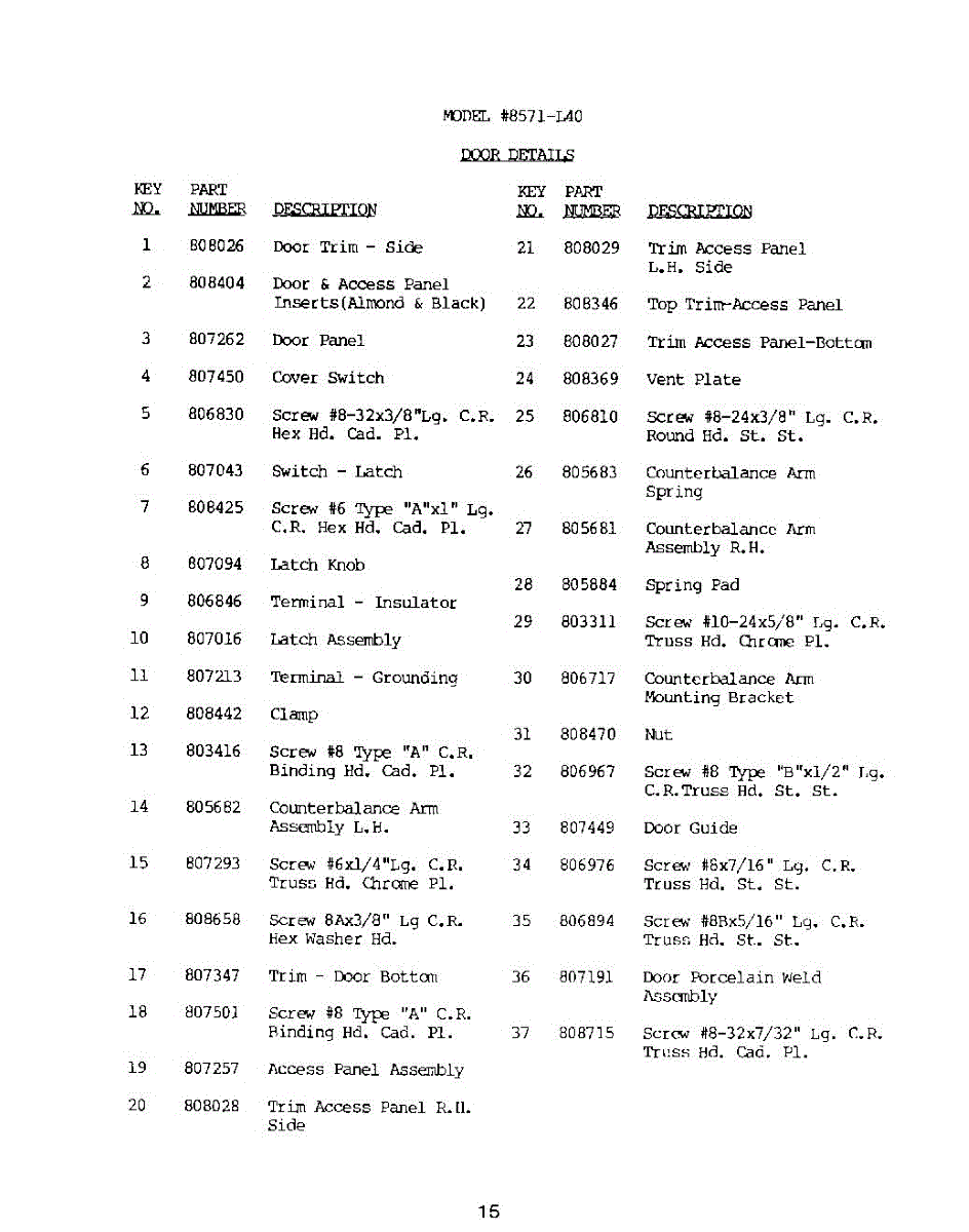 Parts for Roper 8571L40: 16 - Door Parts