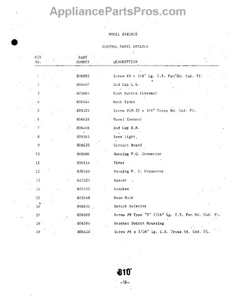 Parts for Whirlpool 8591W20: 19 - Door Parts