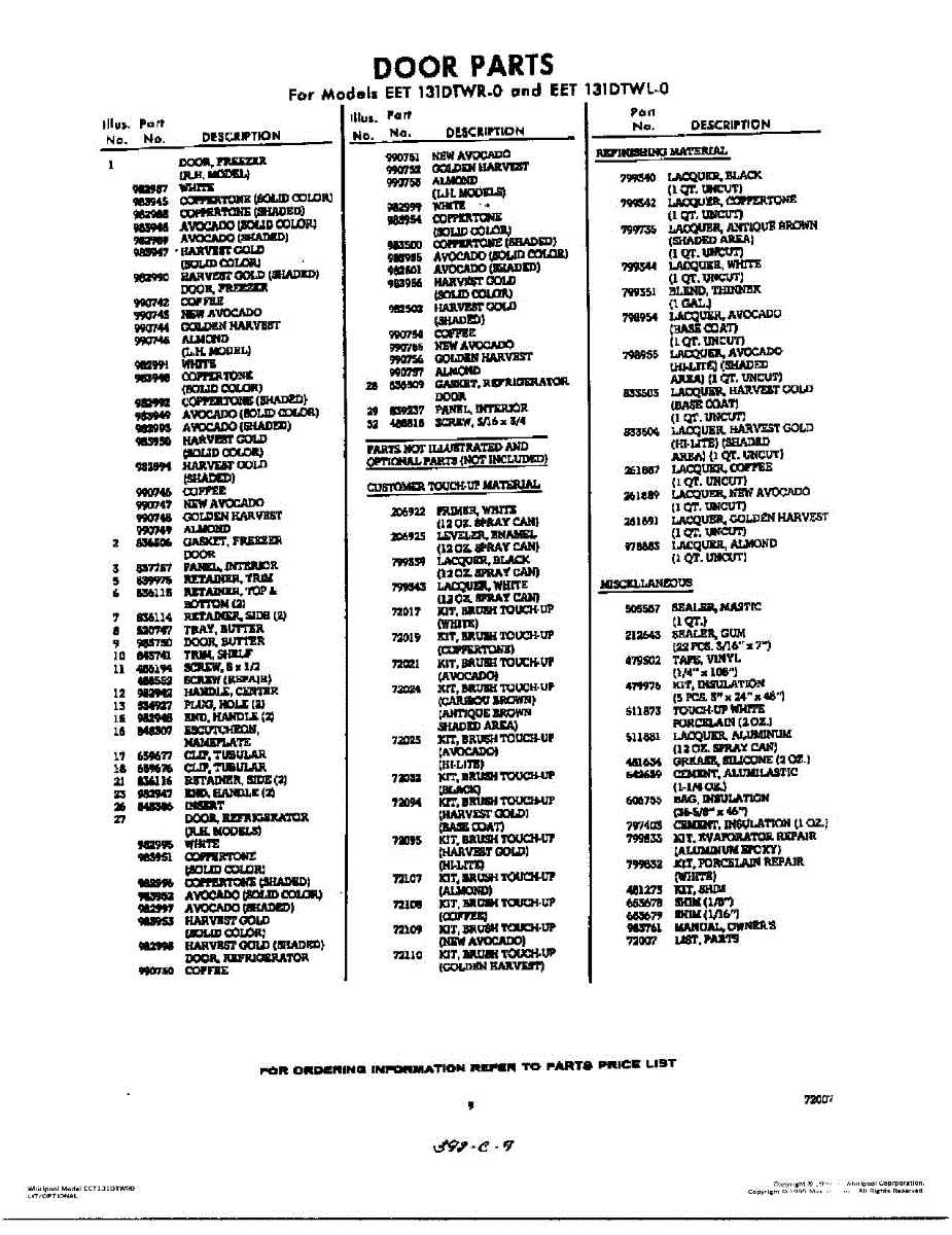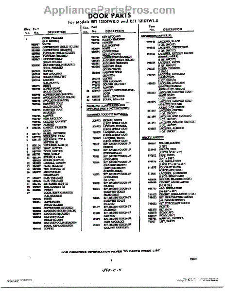 Parts for Whirlpool EET131DTWR0: 09 - Door Parts
