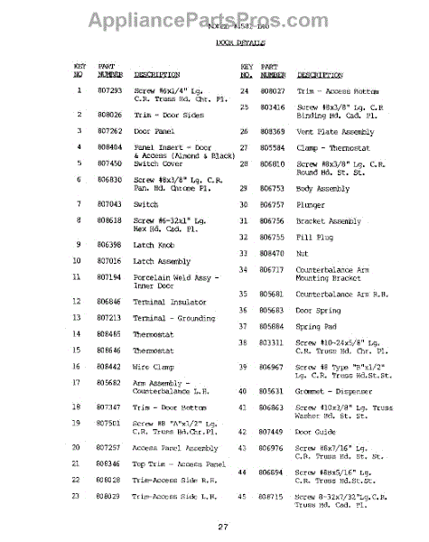 Parts for Roper 8571L40: 28 - Door Parts
