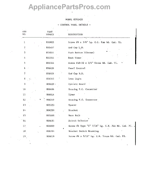 Parts for Whirlpool 8591W20: 35 - Door Parts