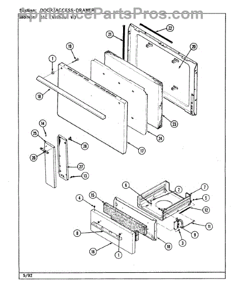 This factory fastener secures panels, trim, or brackets on your appliance. Replacing a missing or stripped screw restores a snug, rattle-free fit and keeps components aligned for proper operation and a clean, finished appearance.