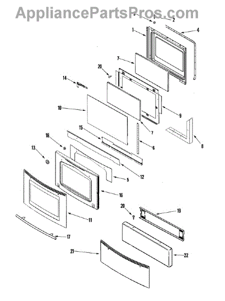 Size: 20 5/8 inches x 13 1/8 inches. For the glass measuring 22 3/8 inches x 14 inches order 74004857 Causes of a bad oven inner door glass can include small cracks or chips developing from regular door openings/closings, or microscopic defects that enlarge under repeated thermal cycling. Damage from accidental impacts is also possible. Symptoms of a bad Oven Inner Door Glass include: