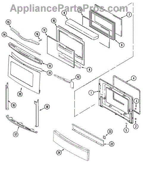 Size: 20 5/8 inches x 13 1/8 inches. For the glass measuring 22 3/8 inches x 14 inches order 74004857 Causes of a bad oven inner door glass can include small cracks or chips developing from regular door openings/closings, or microscopic defects that enlarge under repeated thermal cycling. Damage from accidental impacts is also possible. Symptoms of a bad Oven Inner Door Glass include: