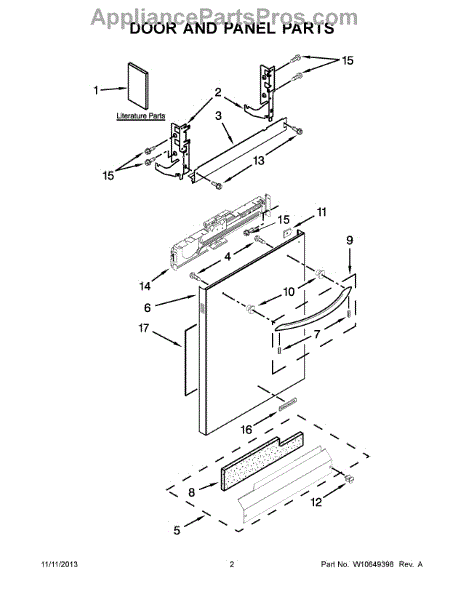 The Panel (BLK) is an OEM part for Whirlpool dishwashers. This black exterior panel is designed to provide a sleek and durable front surface for the dishwasher, enhancing its appearance and protecting internal components.