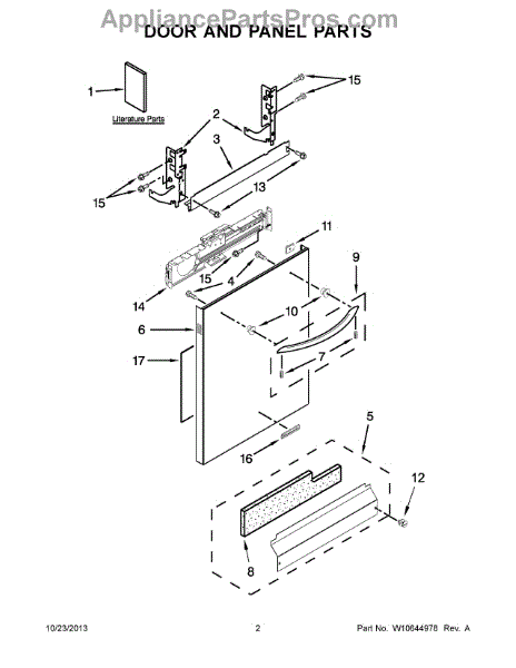 The Panel (BLK) is an OEM part for Whirlpool dishwashers. This black exterior panel is designed to provide a sleek and durable front surface for the dishwasher, enhancing its appearance and protecting internal components.