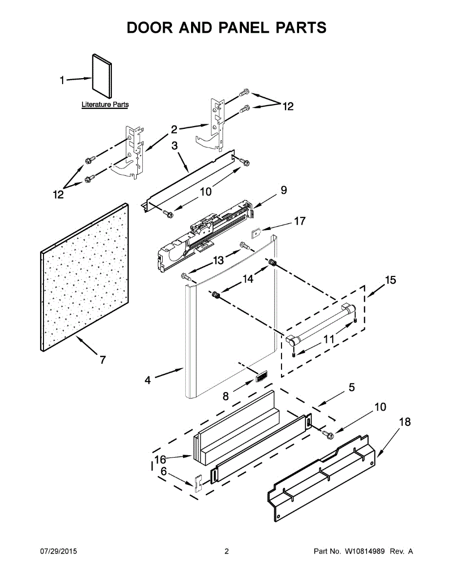 Replacement dishwasher panel that covers and protects internal components. Install to replace a dented, cracked, worn, or missing panel piece.