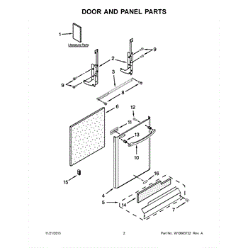 The Panel (BLK) is an OEM part for Whirlpool dishwashers. This black exterior panel is designed to provide a sleek and durable front surface for the dishwasher, enhancing its appearance and protecting internal components.